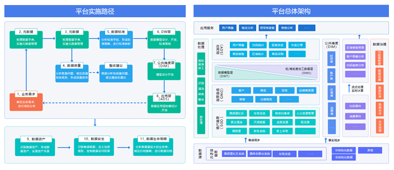 華致酒行依托智能數據治理平臺——睿治,搭建數據中臺,整合主要的業務系統源數據,建設一套準確、完整、強大的基礎數據平臺;形成數據標準體系,提高數據質量,為各業務部門的管理分析提供一致且完整的數據支持,為面向主題的分析型應用的開發建設提供數據基礎和技術基礎;在平臺上挖掘數據價值與決策支持應用,滿足業務應用的同時,也可直接為管理提供決策服務。