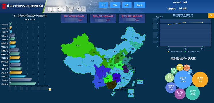 對標管理系統財務部分主要進行數據分析,為中國大唐集團公司以及板塊企業進行多維度分析決策和運營決策提供及時有效的信息。對標管理系統物資部分主要實現電子倉庫,實現物料全集團共享查詢、支持備品備件協作網管理、聯儲代儲管理;整合各基層企業采購數據并且集成大唐電子商城平臺相關采購數據,進行數據分析為采購決策提供支持。