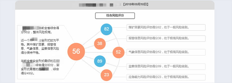 綜合風(fēng)險(xiǎn)研判分析報(bào)告以區(qū)域風(fēng)險(xiǎn)指標(biāo)為依據(jù),以區(qū)域和風(fēng)險(xiǎn)指標(biāo)兩個(gè)維度,從整體到局部,由粗到細(xì)分析全省安全形式,并給出研判建議。