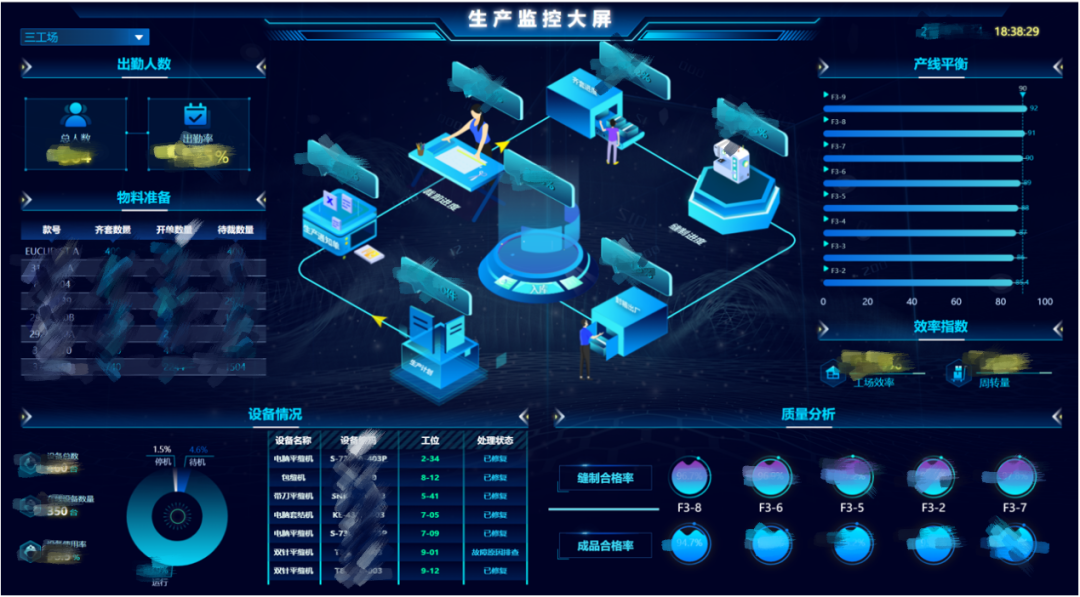 該項目為生產部提供全流程監管報表,并配合移動端、電視、大屏多種展現形式,在車間、園區、監控中心多個地點同時進行監控:(注:以下所有數據均已脫敏)