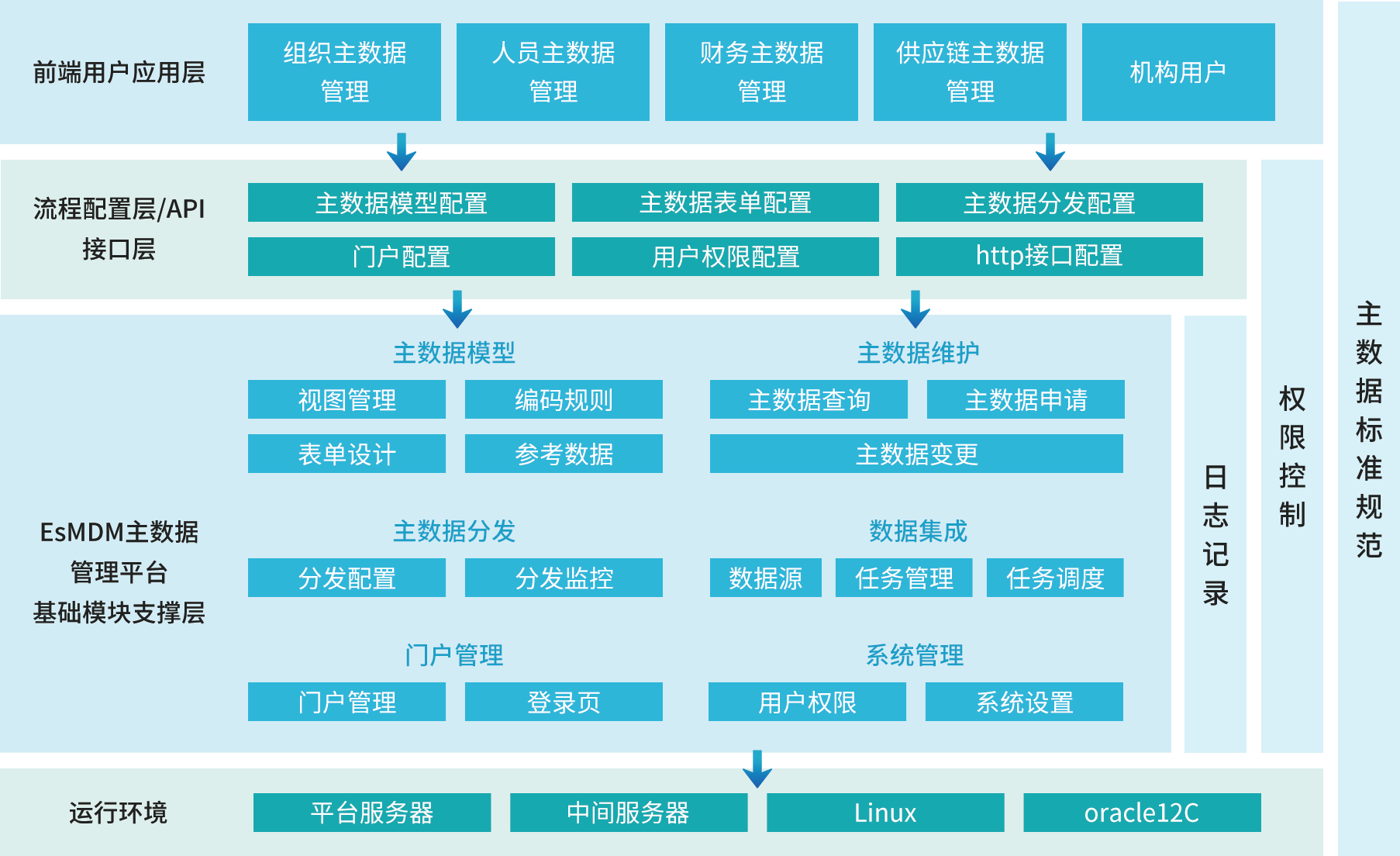 基于標準的數據管理模型,實現主數據的統一定義、統一規則、統一發布等事務的集中處理。通過數據的審計支持,來保證數據變化經過嚴格的審批;通過數據管理的持續優化和改進,提升數據資產的管理成熟度。