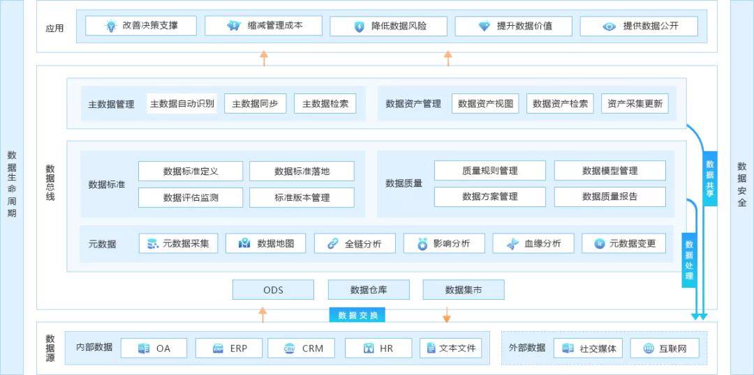 數(shù)據(jù)資產(chǎn)管理、數(shù)據(jù)安全管理、數(shù)據(jù)全生命周期管理十大功能模塊,打通數(shù)據(jù)治理各個(gè)環(huán)節(jié)。