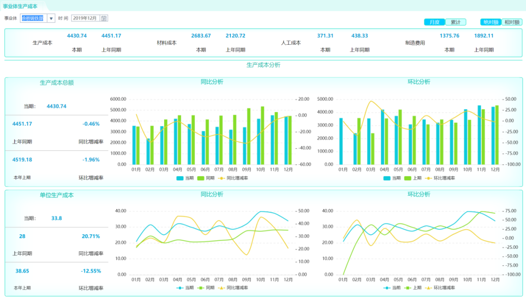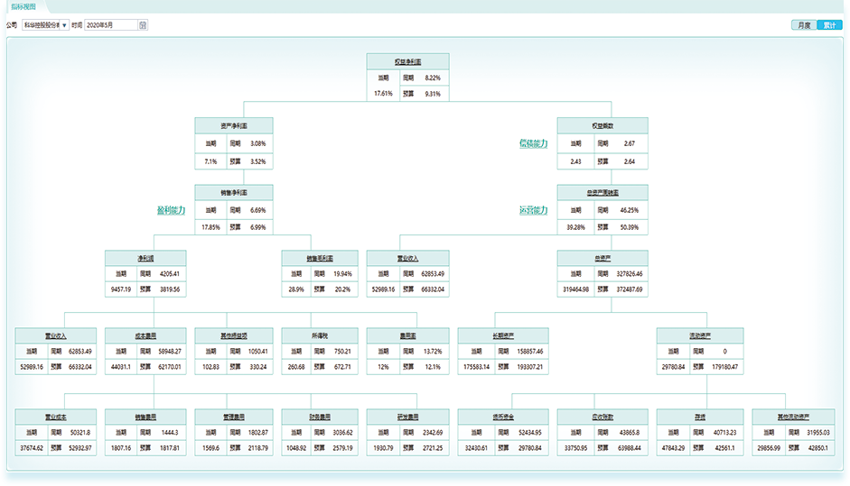 分別從盈利能力、運(yùn)營(yíng)能力、償債能力、成本管理等方面進(jìn)行數(shù)據(jù)分析,展現(xiàn)領(lǐng)導(dǎo)關(guān)注的核心指標(biāo),并可以將異常值進(jìn)行預(yù)警,從而對(duì)企業(yè)經(jīng)濟(jì)效益的優(yōu)劣作出準(zhǔn)確的判斷和評(píng)價(jià)。