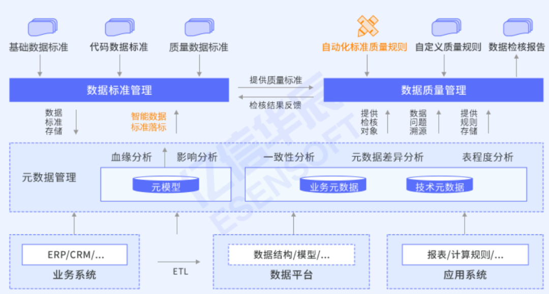 數據標準的制定為各部門、各系統數據的統一奠定了基礎;梳理元數據,實現對企業數據的全面盤點,激活企業數據資產,釋放
