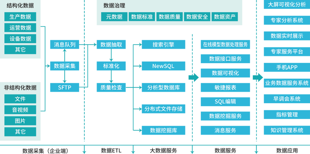 數據治理功能的集成平臺,為應用系統間的高效流轉賦能。這些能力,是企業邁向數字化轉型過程中所必需的,也是目前很大一部分國企需要提升的。