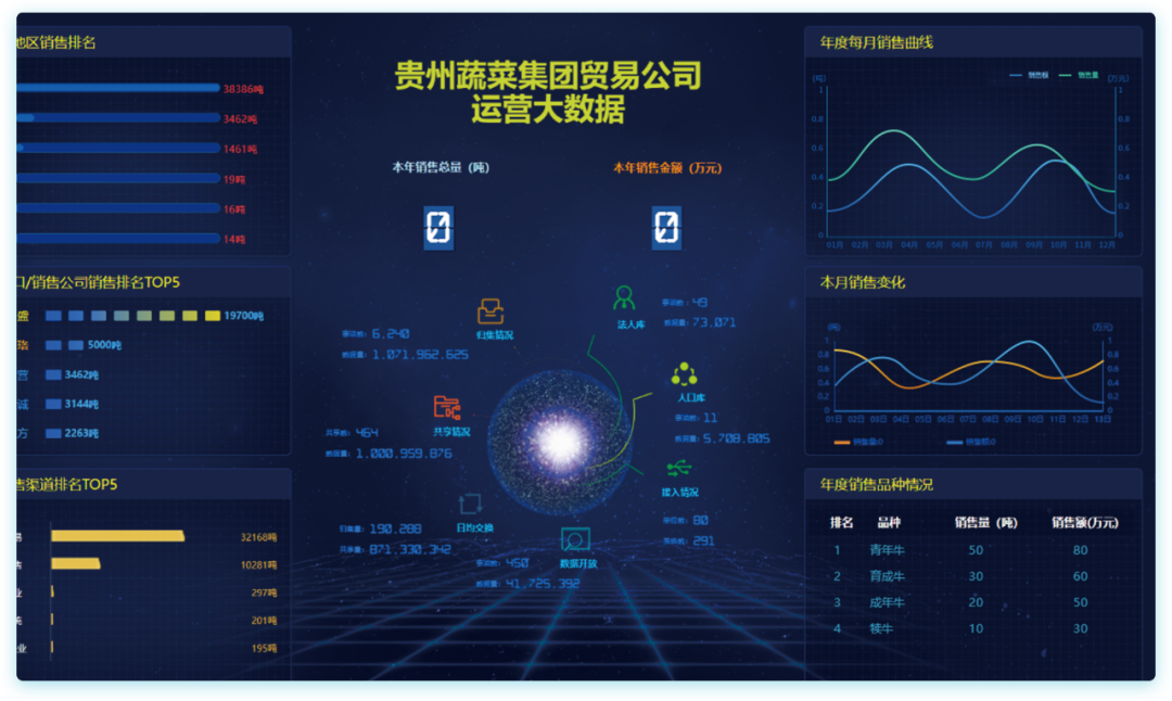 數據集市,將多個系統數據進行整合,構建分析集市;同時建設支撐業務決策的統計分析平臺,按照不同的農產品類型、不同的倉庫、不同的發貨地等作為維度,統計整個集團的數據;按照不同需求將指標維度展示給領導查看。