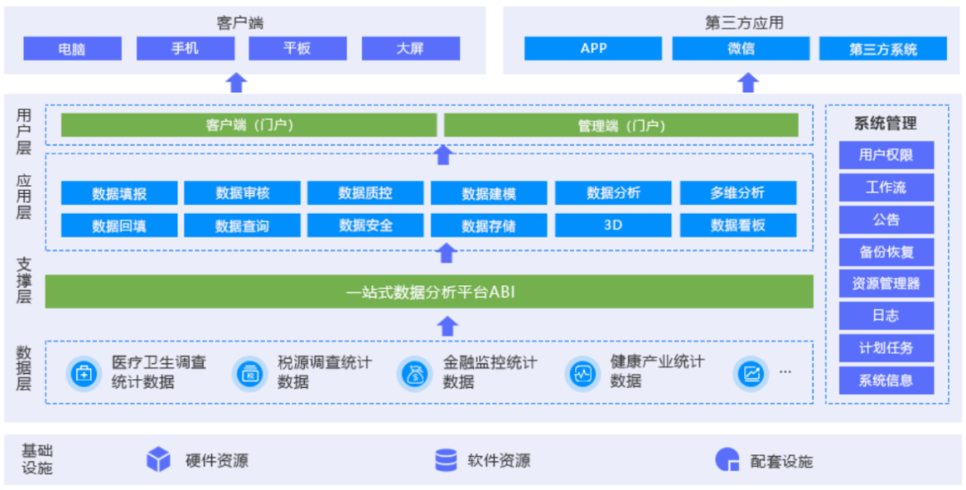 此方案應用于國家衛健委統計直報與統計決策系統,承擔全國常規衛生健康統計數據采集分析任務,為縣級以上行政單位提供統計結果;承擔專項調查,如醫改監測、孕產婦分娩登記、病案首頁、人力資源等;承擔臨時性應急報送任務。同時以統計直報系統、統計年鑒為數據來源,提供