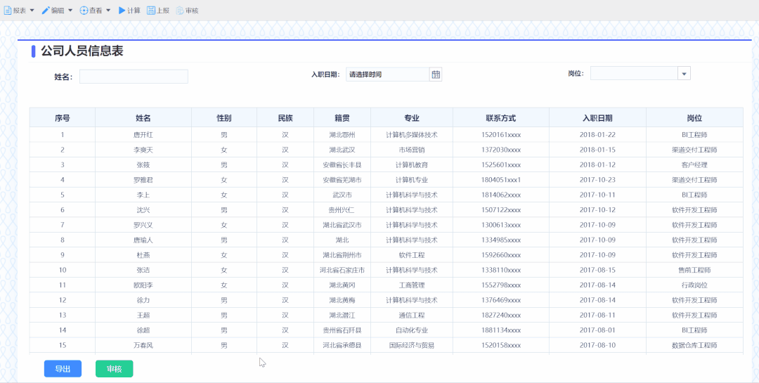 數據審核:包括強制性審核和合理性審核兩種方式。強制性審核是報表數據必須要符合的審核公式,不通過則無法上報;合理性審核是提示性審核,數據屬實的情況下可以忽略,不屬實應修改。