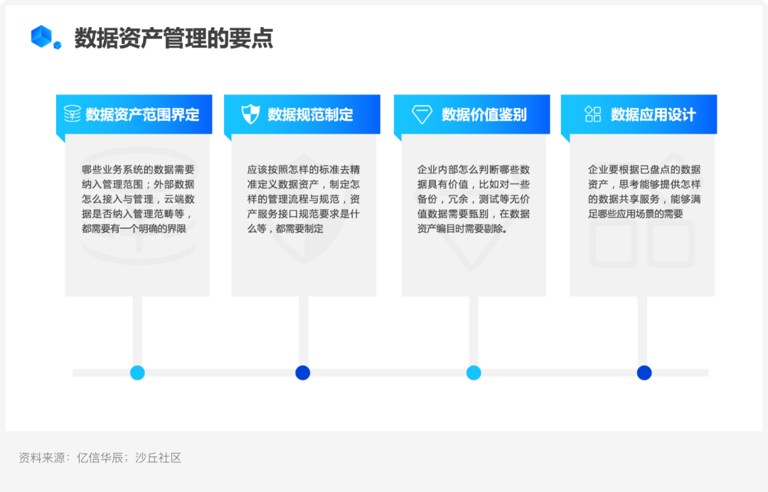 第一,數據資產范圍界定。哪些業務系統的數據需要納入管理范圍;、外部數據如何接入與管理、云端數據是否納入管理范疇等,都需要進行明確界限;