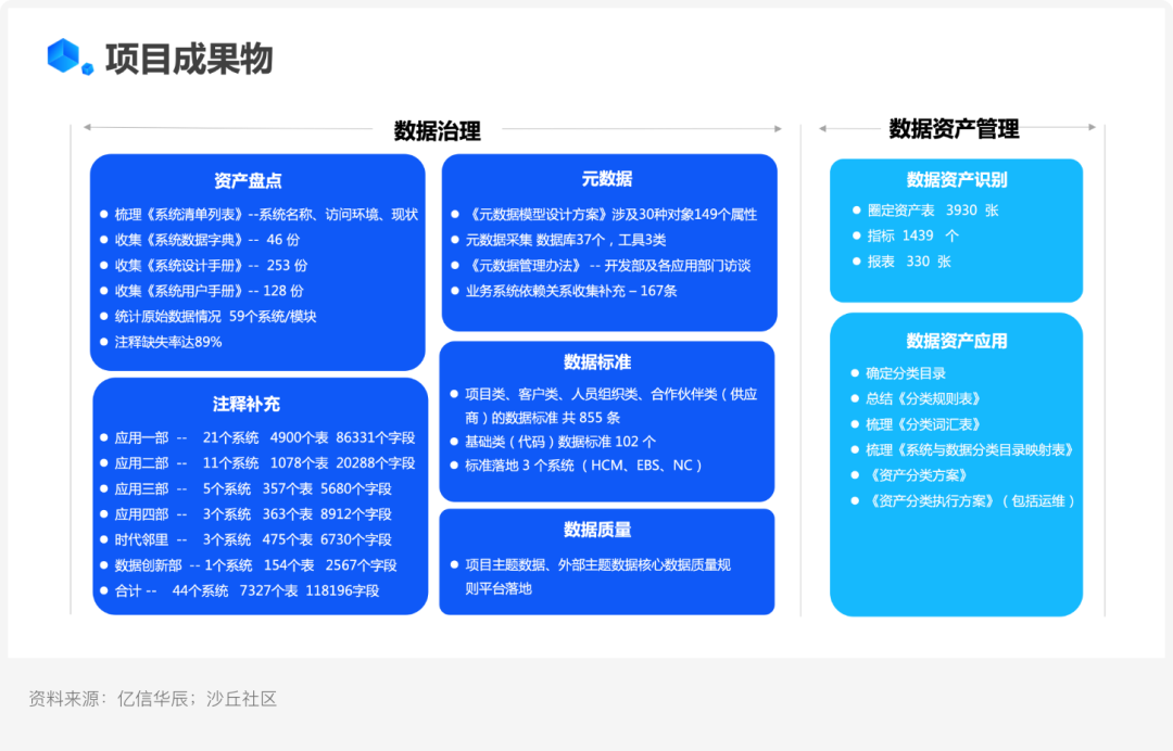 (3)通過資產盤點,了解集團目前總體數據規模和分布情況;基于盤點結果,發現問題,制訂解決方案。并且對所有數據進行注釋補充工作,幫助理解數據含義,讓數據真正做到為業務賦能。