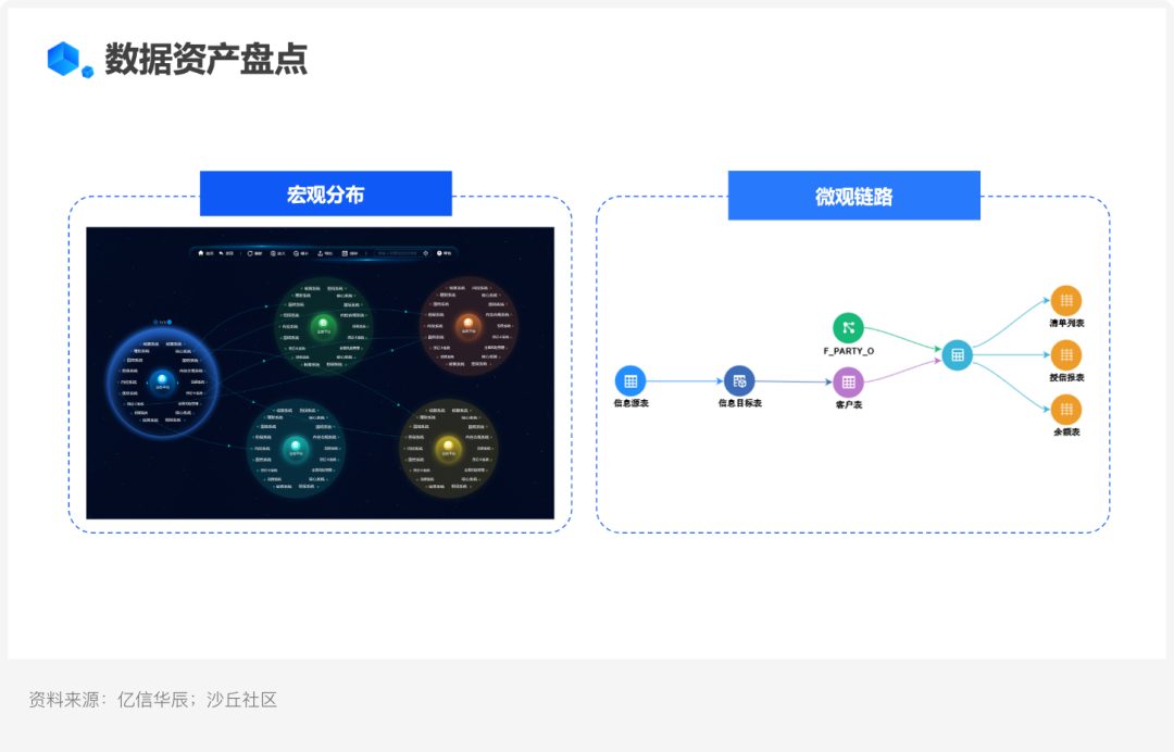 ? 宏觀分布:時代中國涉及的業務系統眾多,且系統之間不完全打通,在數據資產盤點時,需要對所有信息進行數據,分析數據資產之間的關聯關系;