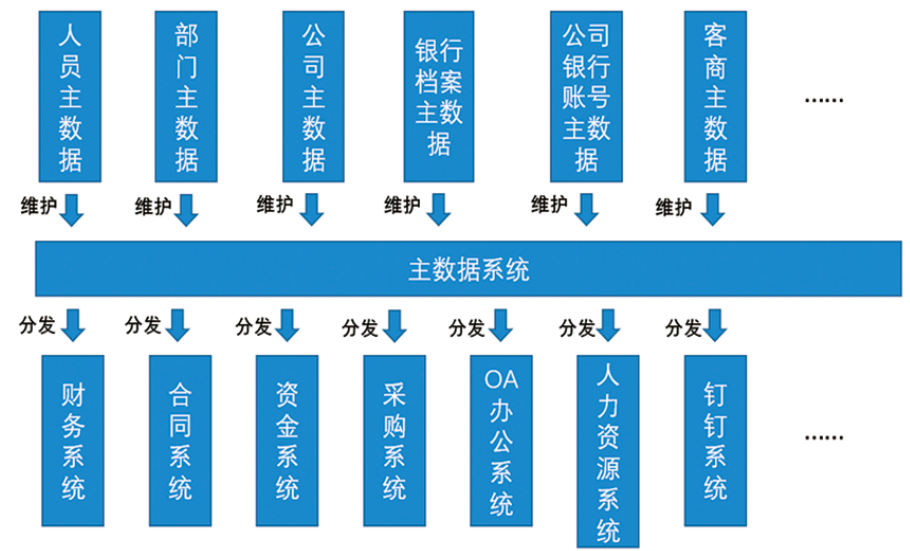 數據標準、建立管理制度和流程、建設主數據管理系統為主要目標,實現集團總部合同管理系統、人力資源系統、OA、門戶系統、財務系統集群(預算、共享、資金、核算系統)、檔案管理系統的主數據統一管理;并建立統一的主數據管理模型、流程、制度,在集團層面實現主數據的規范管理。