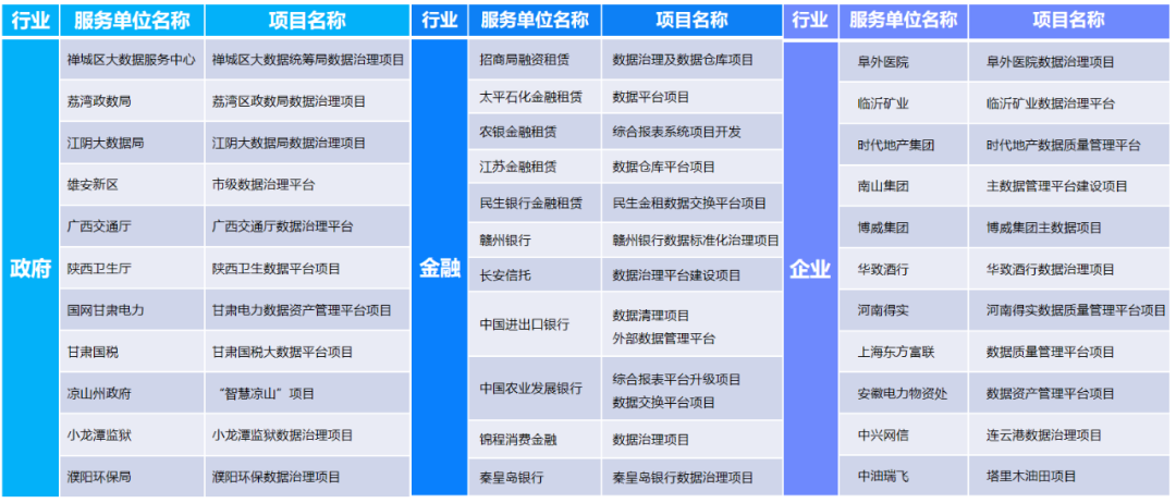 億信華辰數據治理項目不完全列舉