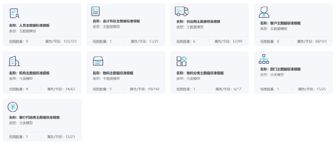 1、新增行業(yè)主數(shù)據(jù)模型模板,建模更便捷高效