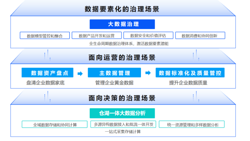 數字化轉型不同階段的數據治理全域解決方案,方案覆蓋數據資產盤點、數據標準與質量管控、