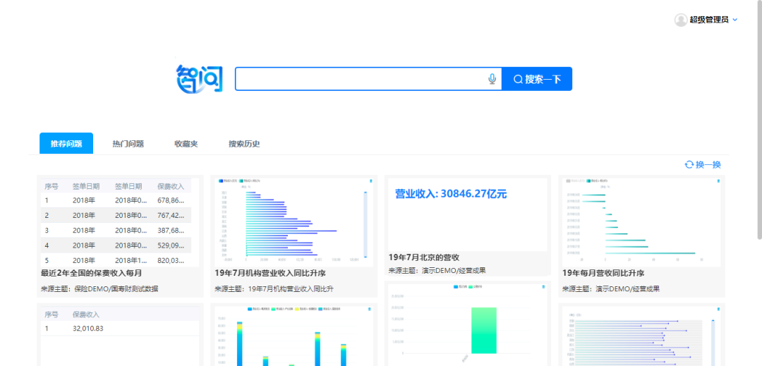 智問使用了人工智能中的自然語言理解、智能檢索等技術,支持用對話或者文字輸入的方式查詢數據、分析數據,使數據分析的門檻真正降為零。