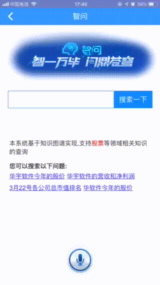 比如對智問說“xx公司的股價”,系統就會自動出一個體現公司股價并匹配數據的趨勢圖。超級省時省事,而且對初學者來說是極大的福音,沒有任何學習的成本,通過說或輸入文字的方式,就能獲取數據圖表。