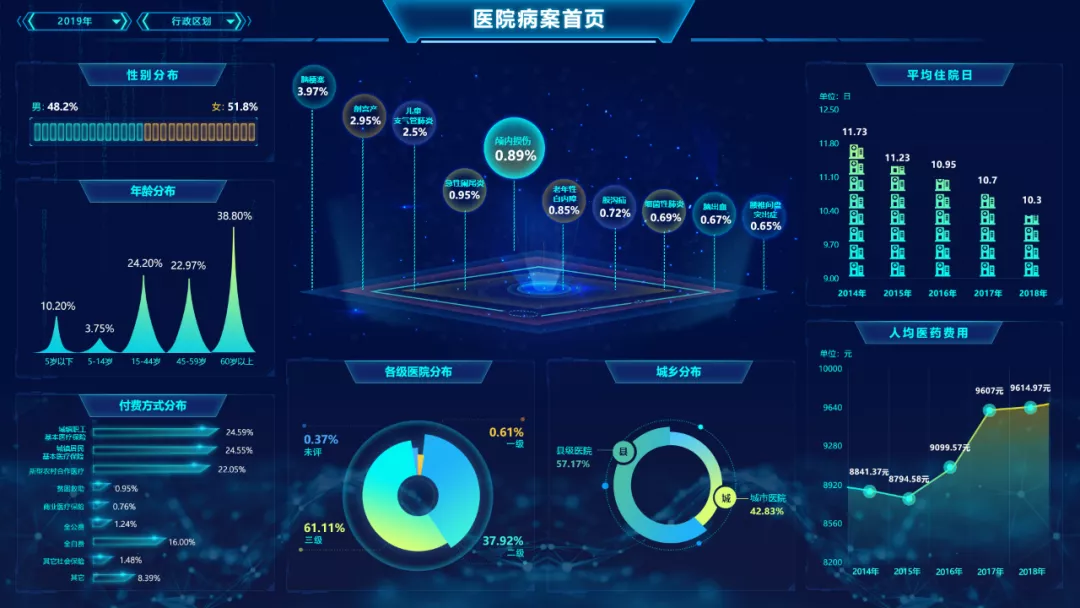 實現衛生資源、醫療服務、疾病控制、衛生監督、婦幼保健、統計年鑒等衛生信息資源的快速查詢與分析;構建領導駕駛艙,重點呈現領導關注的“人、財、物”KPI指標,為領導決策提供依據。