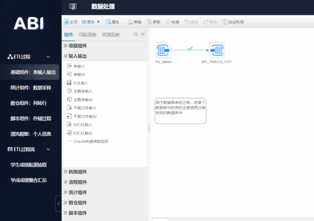 數據處理:列舉了部分ETL過程及ETL過程流,億信ABI通過運用大量可視化ETL組件,讓傳統的數據處理過程變得透明可見。