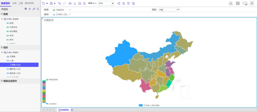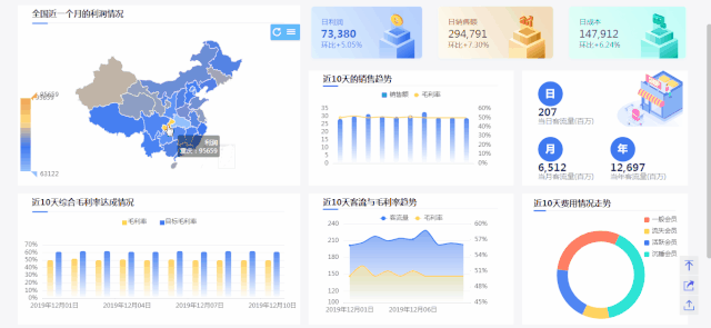 智能圖表推薦:根據拖拽的指標和維度,識別最優的展現形式,來進行智能推薦。比如當用戶使用“地區”這樣指標時會自動使用地圖進行數據展現。