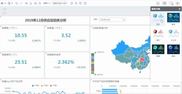 你不會設計、不懂配色,平時做ppt都靠到處搜羅模板?沒關系,豌豆BI提供成套的配色方案,一鍵切換↓