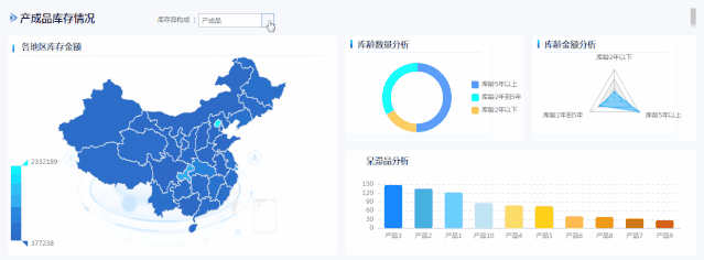 智能聯動鉆取:所有圖表無需任何設置即可聯動,也可自定義選擇部分圖表參與聯動和下鉆。