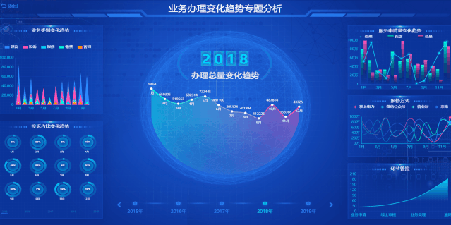 酷屏作為億信華辰自主研發的新一代大屏可視化產品,內置上百種風格各異的表格、導航、統計圖等組件及SVG特效可供用戶選擇,展示效果炫酷,可任意制作酷炫靈動的圖表和大屏。