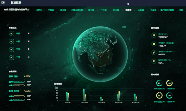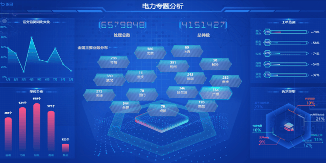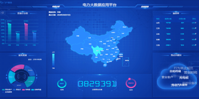 酷屏支持整合電力部門現有信息系統的數據資源,覆蓋基建、運檢、調度、生產、營銷、安監等多個業務領域。針對領導視察、迎檢匯報、客戶參觀等情景,支持靈活構建可視化匯報主題,并可提供多種可視化手段,對電網側數據、用戶側數據、泛在電力物聯網建設應用成果、保電任務、應急處置流程等內容進行動態展示。