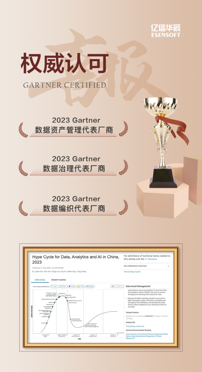 近日,國際權威研究機構 Gartner 發布《Hype Cycle for Data, Analytics and AI in China, 2023》(2023中國數據、分析與AI技術成熟度曲線報告)報告,億信華辰成功入選