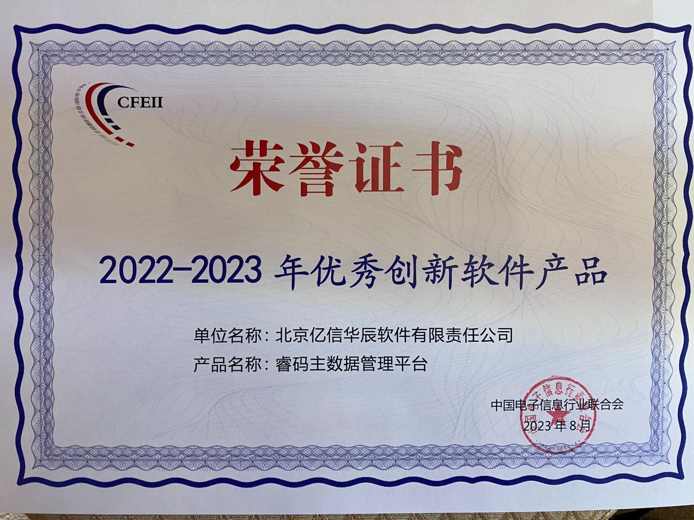 主數據管理平臺獲得專家的一致認可,榮獲“2022-2023年度優秀創新軟件產品”,這是繼去年睿治