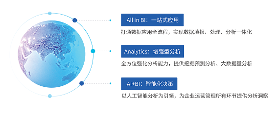 作為國內首家有ABI聯合思維并在產品名中使用“ABI”的公司,我們用專業能力定義行業標準,并持續打造行業標桿客戶,引領行業發展新風向,更賦予了適用于中國本地化數字化轉型的“3A”指導策略,即:AII in BI一站式應用 、Augmented Analytics增強型分析、智能化決策AI+BI。