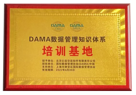 2021年4月,億信華辰被正式授權為DAMA中國(國際數據管理協會-中國分會)數據管理知識體系培訓基地,成為