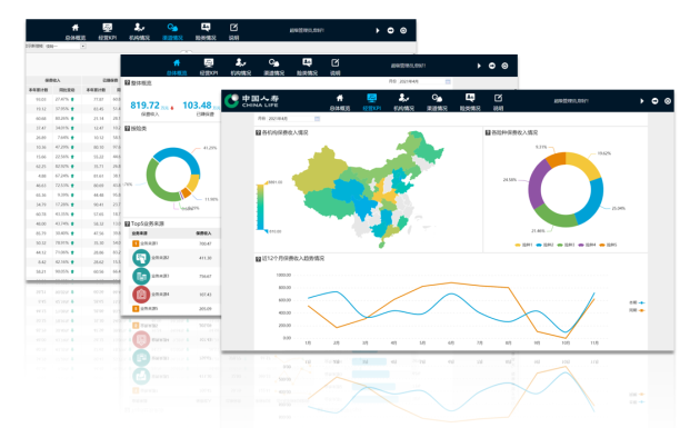 億信ABI,完成以上統(tǒng)計(jì)分析報(bào)表的設(shè)計(jì)與制作,并將這些報(bào)表集成到中國人壽財(cái)險(xiǎn)的業(yè)務(wù)平臺(tái),使其統(tǒng)一展現(xiàn)。