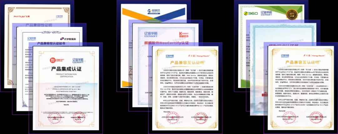 如今,億信華辰產(chǎn)品與多家知名信創(chuàng)單位取得了產(chǎn)品兼容互認(rèn)證證書,旗下產(chǎn)品能夠兼容國內(nèi)主流基礎(chǔ)軟硬件環(huán)境,覆蓋服務(wù)器、操作系統(tǒng)、數(shù)據(jù)庫、中間件等各個核心模塊,并具備各種組合信創(chuàng)環(huán)境調(diào)優(yōu)能力,構(gòu)建信創(chuàng)安全生態(tài)體系。