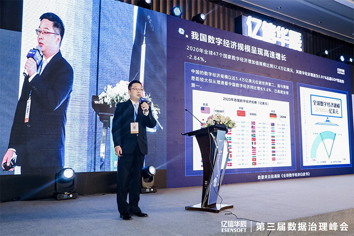 當下最火的無非就是數字經濟,2020年,我國數字經濟規模約為5.4萬億,2020年我們整個國民生產總值GDP約為14萬億,數字占比超過三分之一。全球來看,我們的體量僅次于美國,增速應該是全球第一。在這樣一個大背景下,數字治理在整個數字經濟會起到非常重要的作用。