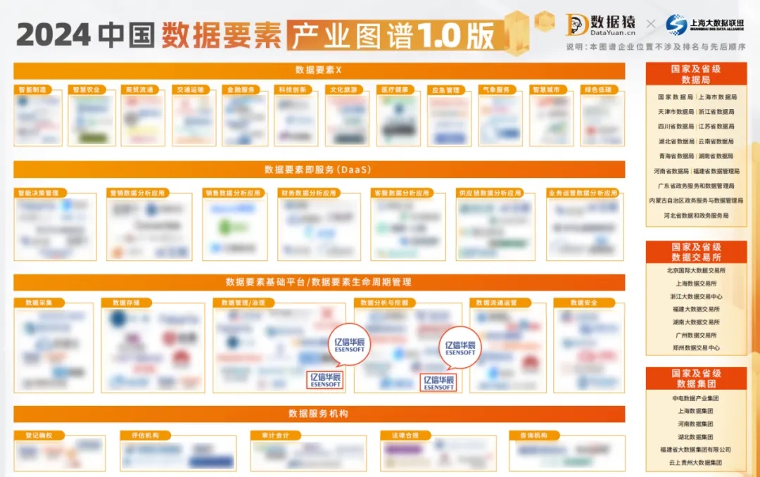 在數據浪潮洶涌的時代,數據要素化正以其獨特的魅力深刻影響社會經濟的各個角落,成為推動未來發展的重要引擎。今日,數智產業創新服務媒體數據猿正式發布了《2024中國數據要素產業圖譜1.0版》,而億信華辰榮幸地榮登其中,在數據管理/治理與數據分析與挖掘兩大關鍵領域均取得顯著地位。