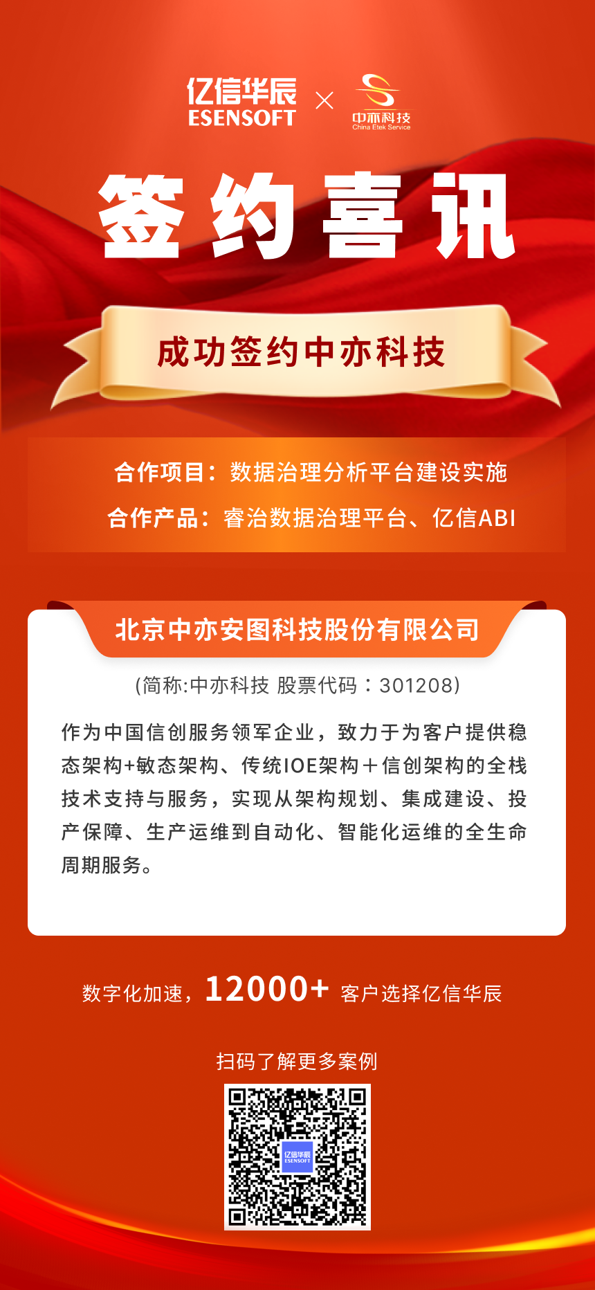 近日,億信華辰與北京中亦安圖科技股份有限公司(簡(jiǎn)稱:中亦科技,股票代碼:301208)正式簽約,共同打造數(shù)據(jù)平臺(tái)項(xiàng)目。此次合作將依托億信華辰睿治數(shù)據(jù)治理平臺(tái)和億信ABI軟件,助力中亦科技實(shí)現(xiàn)統(tǒng)一數(shù)據(jù)管理、數(shù)據(jù)規(guī)范標(biāo)準(zhǔn)管理以及數(shù)據(jù)深度分析,幫助企業(yè)向數(shù)字化、智能化邁進(jìn)。