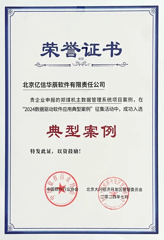 7月4日,2024全球數字經濟大會的重要活動——“數據驅動新質軟件高質量發展論壇”在北京市大興區舉辦,論壇聚焦軟件、大數據、人工智能等前沿數字技術,探索數字經濟如何賦能發展新質生產力。作為深度參與國內數字化轉型的一家企業,億信華辰受邀出席本次大會,憑借“鄭煤機主數據管理系統項目”這一數字化案例,榮獲數據驅動軟件應用典型案例獎。