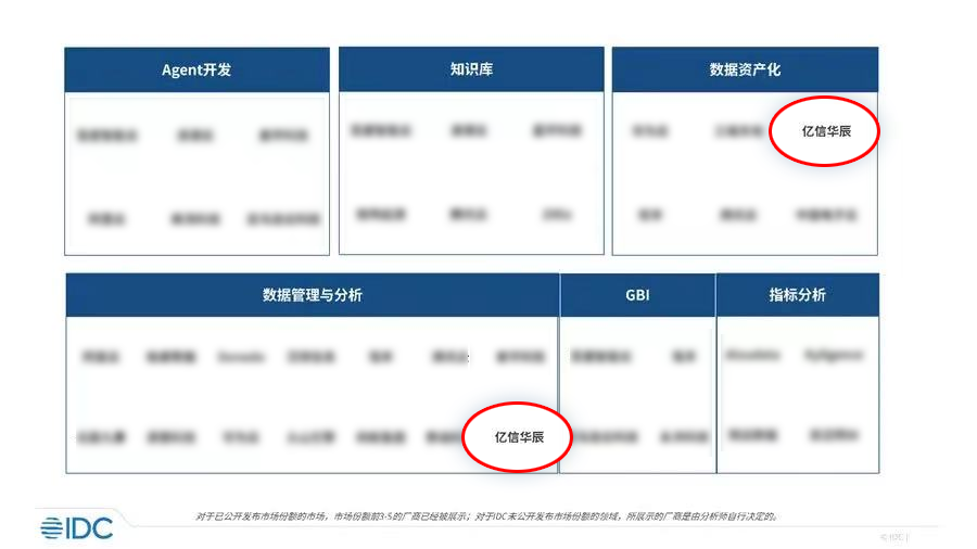 近日,全球知名市場研究機構IDC發布了最新的《中國數據智能市場生態圖譜V5.0》,這一權威圖譜不僅全面勾勒了中國數據智能市場的蓬勃發展態勢,更在眾多優秀企業中甄選出了一批引領行業前行的佼佼者。其中,億信華辰以其在數據管理與分析以及數據資產化領域的卓越表現,雙領域上榜,彰顯了其在中國數據智能產業的領導地位與深厚實力。