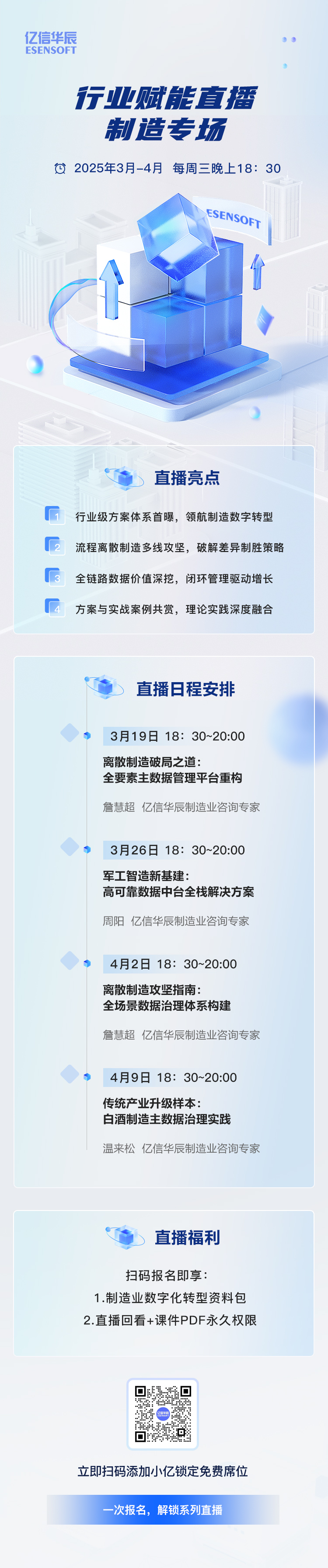 離散制造多線協(xié)同難?流程制造轉(zhuǎn)型慢?數(shù)字化轉(zhuǎn)型浪潮下,制造業(yè)如何破局突圍?答案就在眼前!億信華辰攜手行業(yè)專家,開啟「行業(yè)賦能直播·制造專場」系列直播,3月19日起 每周三晚18:30,直擊制造企業(yè)痛點(diǎn),揭秘離散/軍工/白酒制造領(lǐng)域數(shù)智化通關(guān)密碼!
