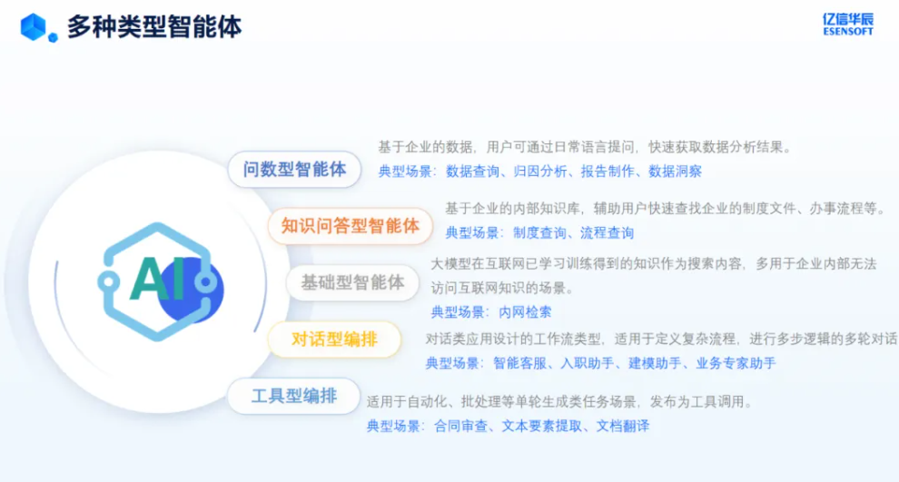 億信華辰企業級AI數智平臺是一款基于智能體開發、深度融合AI與數據管理的企業級數智平臺,旨在解決企業從數據采集、治理到應用的全生命周期痛點。其核心定位是:通過低代碼智能體搭建、多模態知識整合與自動化流程編排,讓企業 “用得上、敢用、用得好” 大模型,實現數據驅動的高效決策。