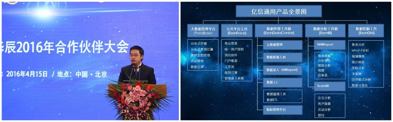 緊接著,億信華辰副總經理毛大群先生以創新·突破·共贏為主題,分享了億信華辰產品的發展過程、新產品特性以及未來產品的規劃。通過10年積累,億信的103名研發工程師,實現了4008臺服務器裝機量,創造了11745924行有效代碼。億信華辰未來的產品線,將覆蓋數據管理與應用全生命周期,以期為合作伙伴提供更多更加成熟穩定的產品。