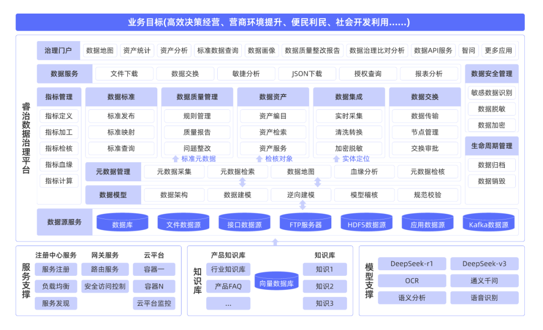 一站式智能數(shù)據(jù)治理平臺:提供數(shù)據(jù)集成、質(zhì)量管理、標準構(gòu)建、資產(chǎn)目錄、安全脫敏等全鏈路能力,為AI訓(xùn)練與推理提供“潔凈、可信、可用”的高價值數(shù)據(jù)燃料。