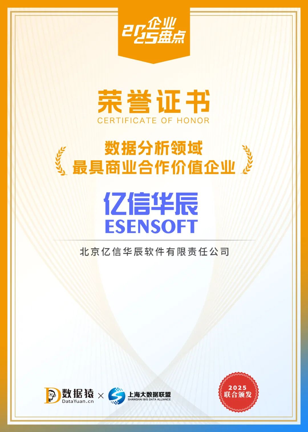 榮譽既是認可,更是鞭策。數據猿的評價一語中的:“億信華辰以其扎實的數據治理功底為數據分析提供‘確定性’。” 這份“確定性”,正是我們在數據價值爆發與AI技術浪潮雙重變局下,賦予客戶最寶貴的資產。