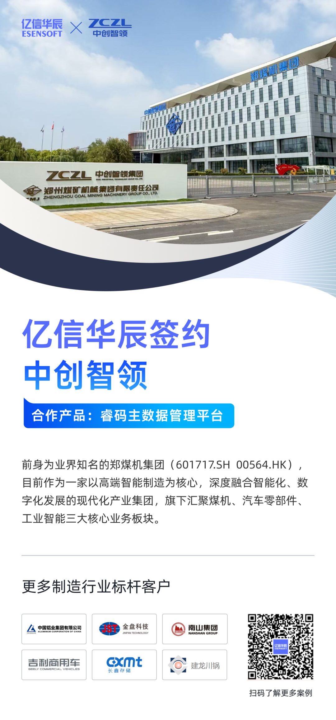 近日,億信華辰正式簽約中創智領(鄭州)工業技術集團股份有限公司(以下簡稱“中創智領集團”),雙方將攜手打造集團級主數據管理平臺。此次合作旨在構建統一、標準、高效的數據基石,全面支撐中創智領集團(其前身為世界知名的鄭煤機集團)在智能制造領域的戰略升級與數字化轉型,標志著億信華辰在工業制造行業數據治理領域再樹標桿。