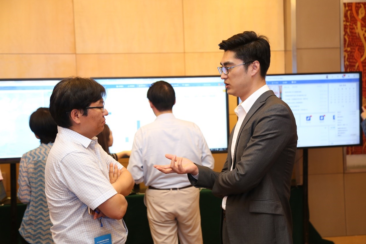 大家聚集在展示區觀看華宇智能數據服務平臺系統演示