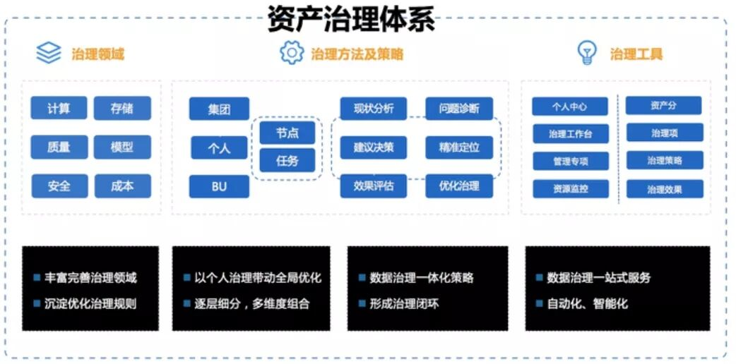 資產(chǎn)治理包括對(duì)計(jì)算、存儲(chǔ)、治理、模型、安全、成本等領(lǐng)域進(jìn)行治理,并形成有效的智能治理閉環(huán),將治理方法論沉淀為工具產(chǎn)品輸出。