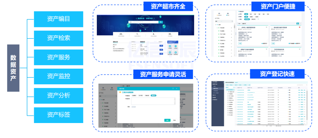 數據資產的定義、盤點和規劃涉及對無序的數據類和應用類資源的管理。通過提供全局統一的數據資產門戶,開發授權豐富、高效、安全的數據服務方式,構建主題明確、服務完善、權責清晰的數據資產管理體系,可以充分釋放數據要素在業務中的價值。其主要作用在于輔助數據資產的盤點,提升數據的價值。