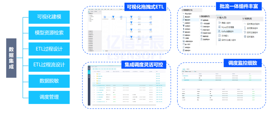 數據集成包括數據內部共享、外部流通和對外開放。數據共享管理的關鍵活動包括定義數據資產運營指標和設計管理方案等。其主要作用在于降低數據資產化操作的門檻,使更多的業務人員能夠參與其中。