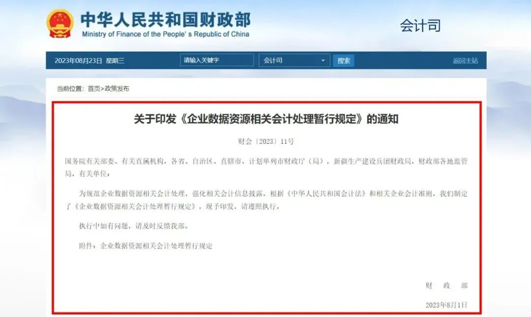 8月21日,財政部發布《關于印發<企業數據資源相關會計處理暫行規定>的通知》,自2024年1月1日起施行;財政部會計司有關負責人就《暫行規定》有關問題回答了記者的提問。